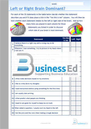• Left or Right Brain Dominant Worksheet