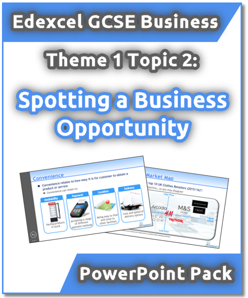- Edexcel GCSE (9-1): Theme 1 – Topic 2 – Spotting a Business Opportunity 1.2.1 to 1.2.4